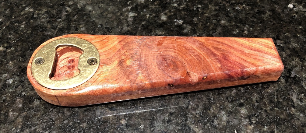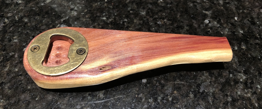 Spalted pecan or purple cedar bottle opener. Your choice from the ones in the photos. Wood from local mill castoffs.